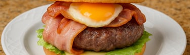 Lechuga, tomate, cebolla, beicon, huevo y queso. ¡Una explosión de sabor!